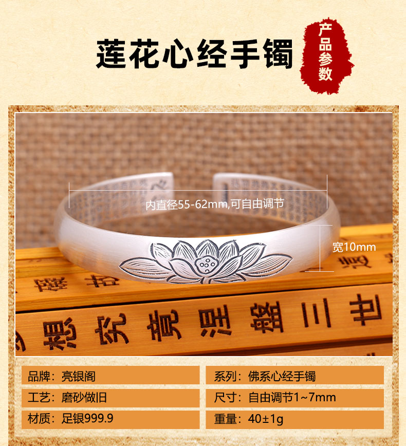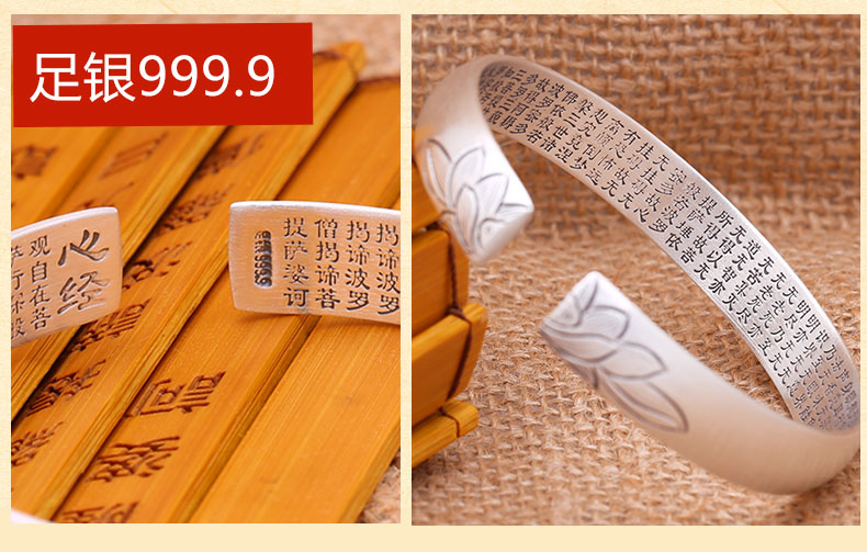足银999莲花心经手镯